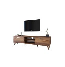 Mueble TV de Madera Color Wengué y Natural con Estantes y Puertas, 151.5x37.5x169.5 cm – Mueble salón moderno.